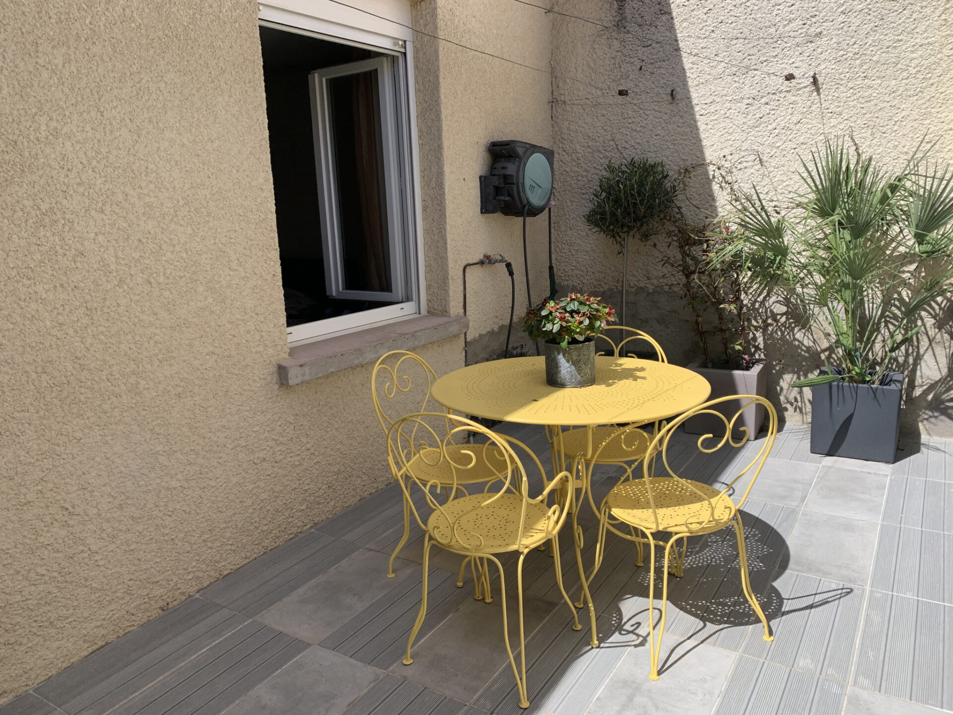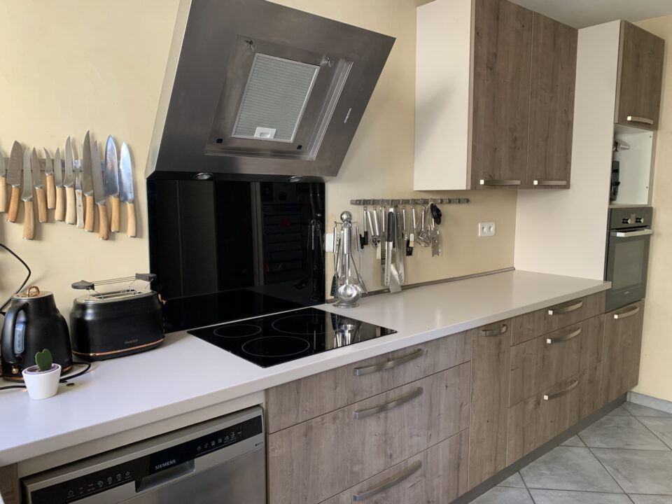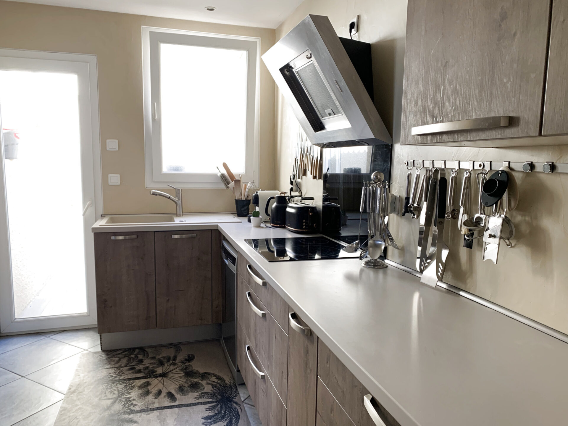 La cuisine équipée, séparée, donne accès à un deuxième extérieur d'environ 15 m2.