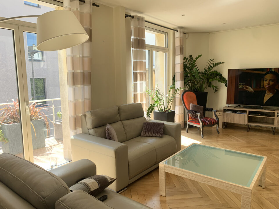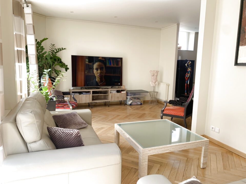 Au premier étage avec possibilité ascenseur (devis disponible), vous trouverez un grand salon-séjour lumineux d'environ 55 m2 avec un beau parquet, donnant sur une terrasse.