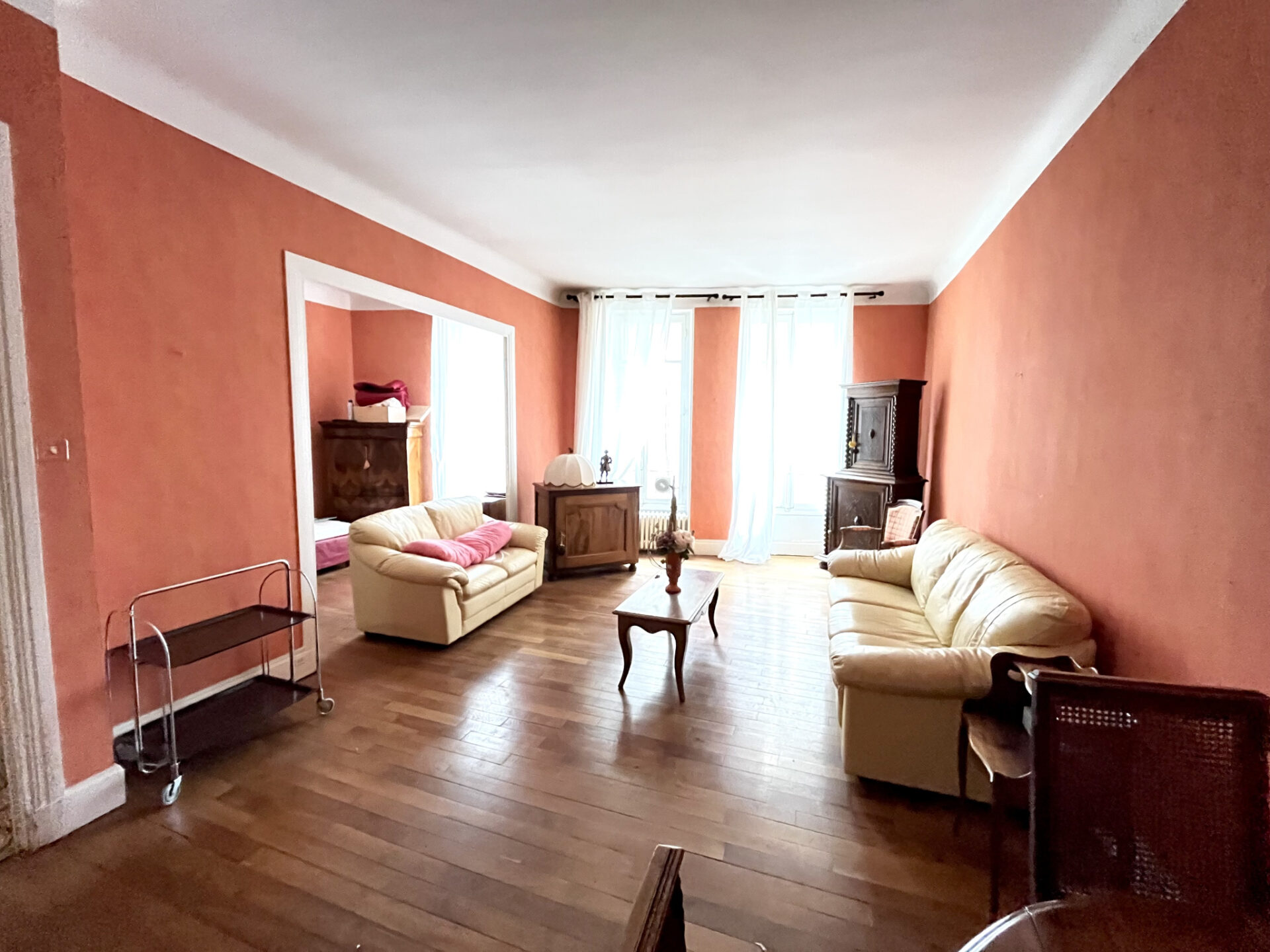 D'une surface d'environ 85 m2, il conserve tout le charme de l'ancien : belle hauteur sous plafond, parquets d'origine et volumes généreux.