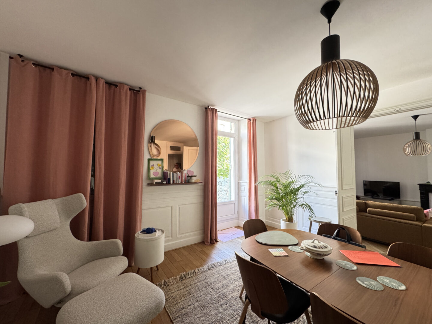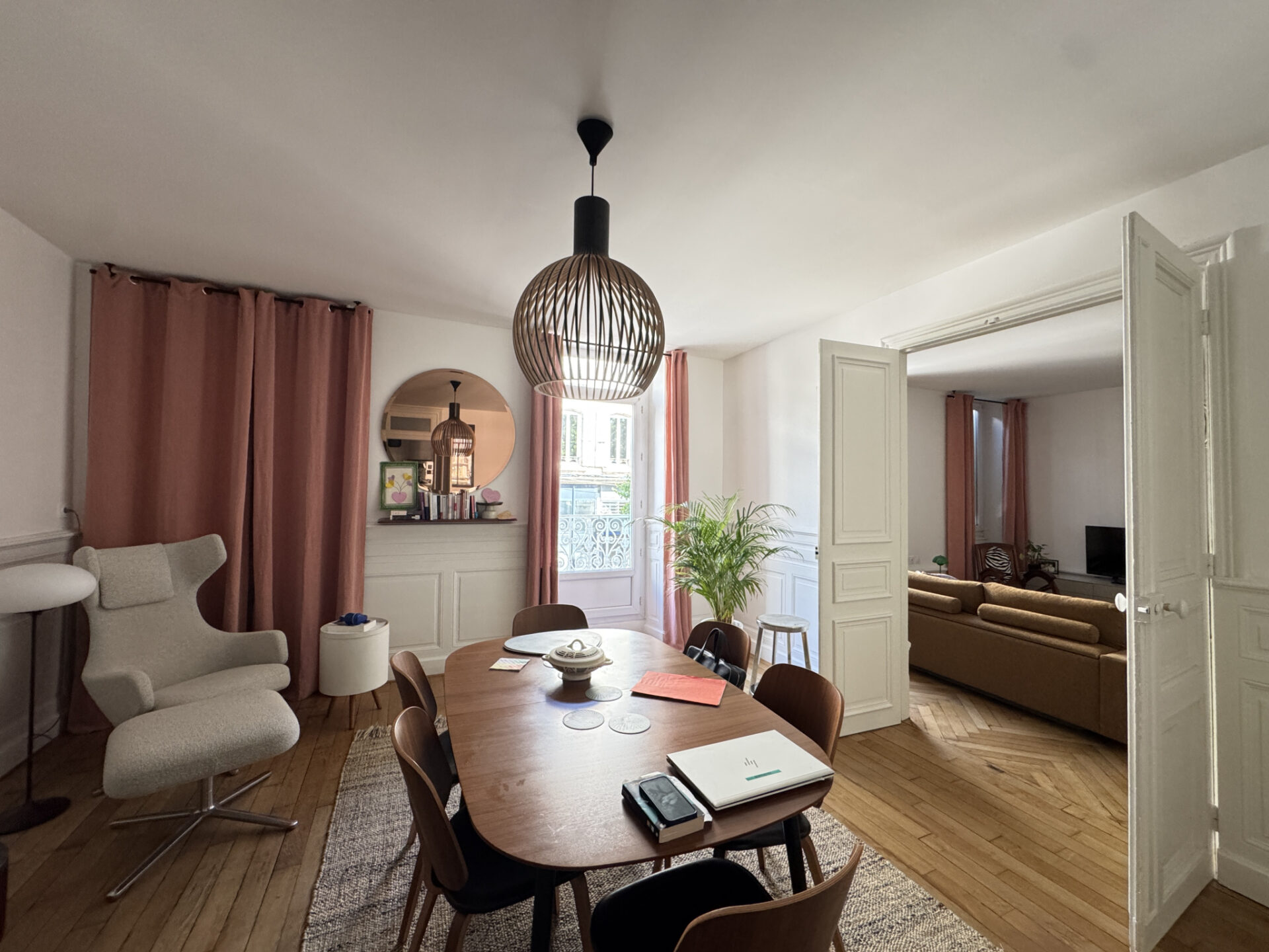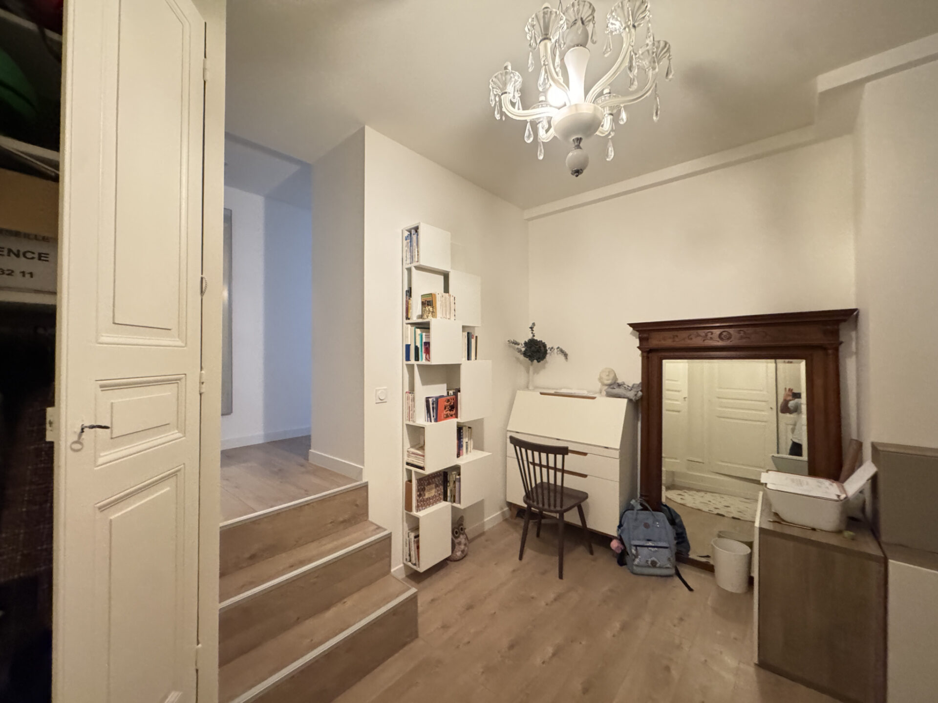 Niché au premier étage d'un immeuble de charme à taille humaine, cet espace allie élégance et luminosité grâce à une rénovation intégrale soigneusement réalisée, mettant en valeur parquet d'origine et cheminées authentiques, symboles du cachet unique du lieu.