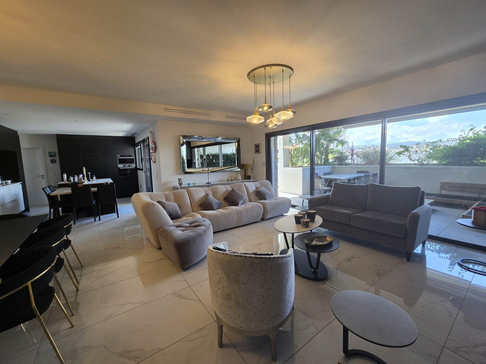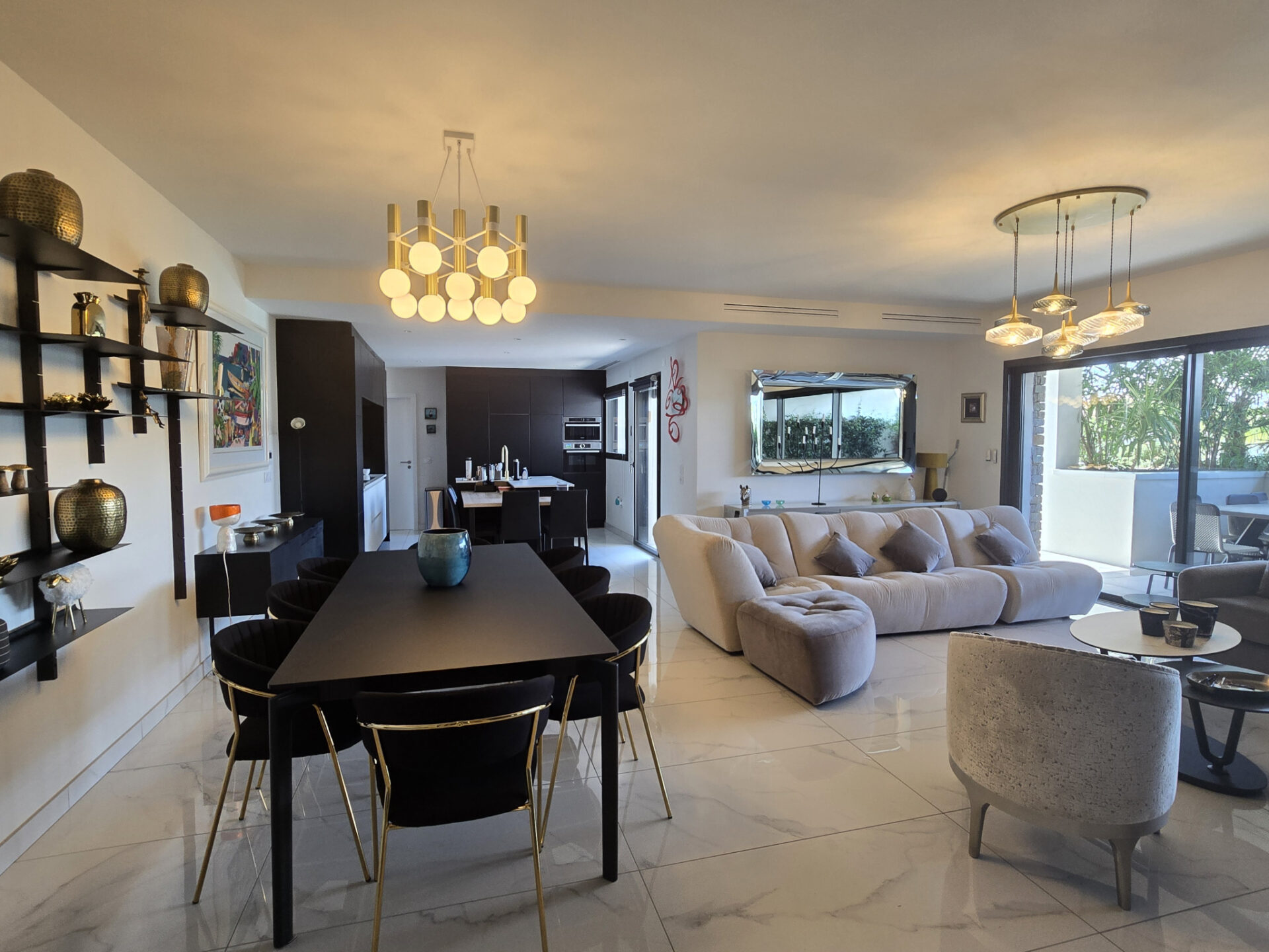 Un cadre de vie exceptionnel, espace de vie lumineux de 60 m2 avec cheminée contemporaine & cuisine intégrée.