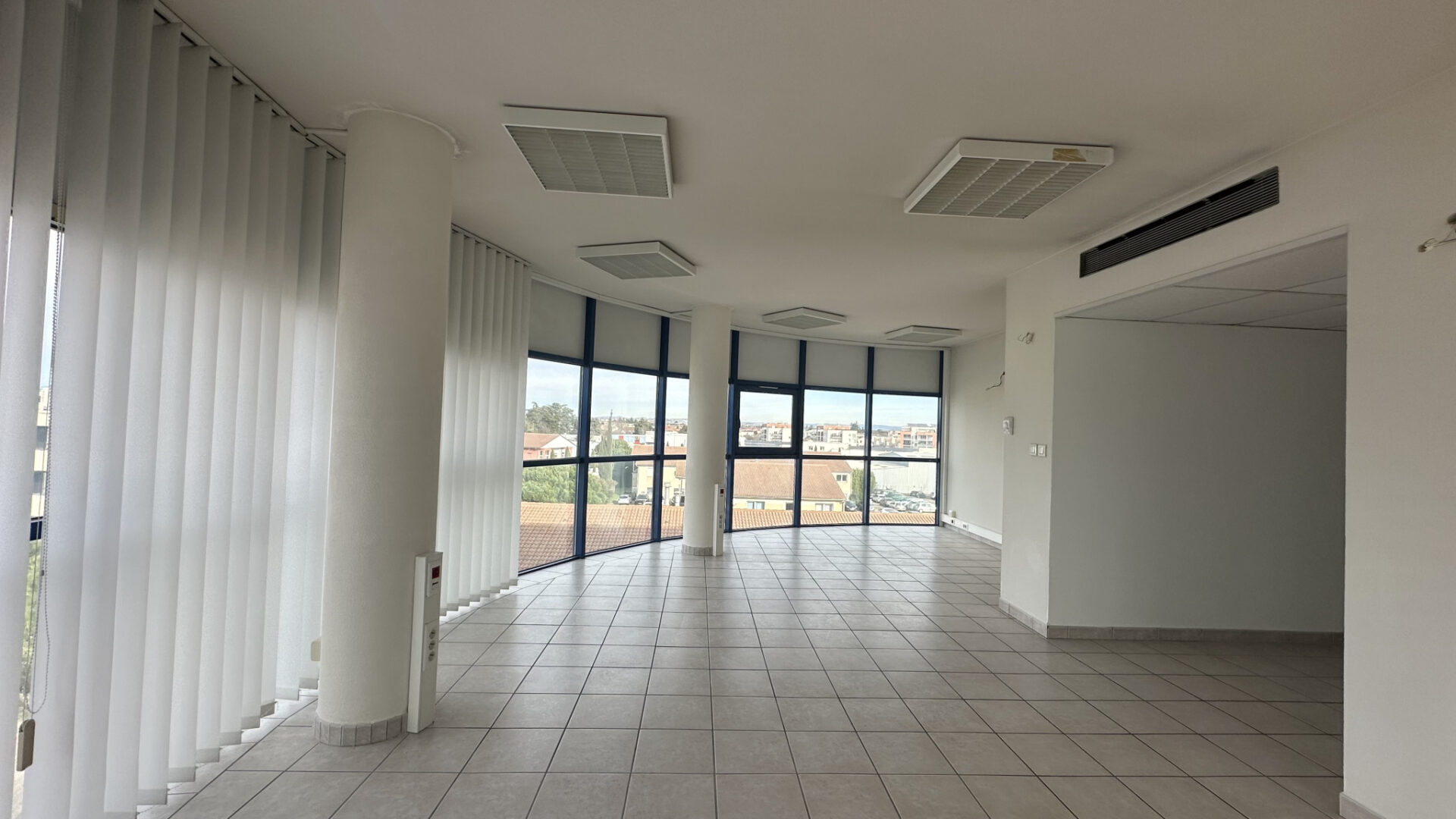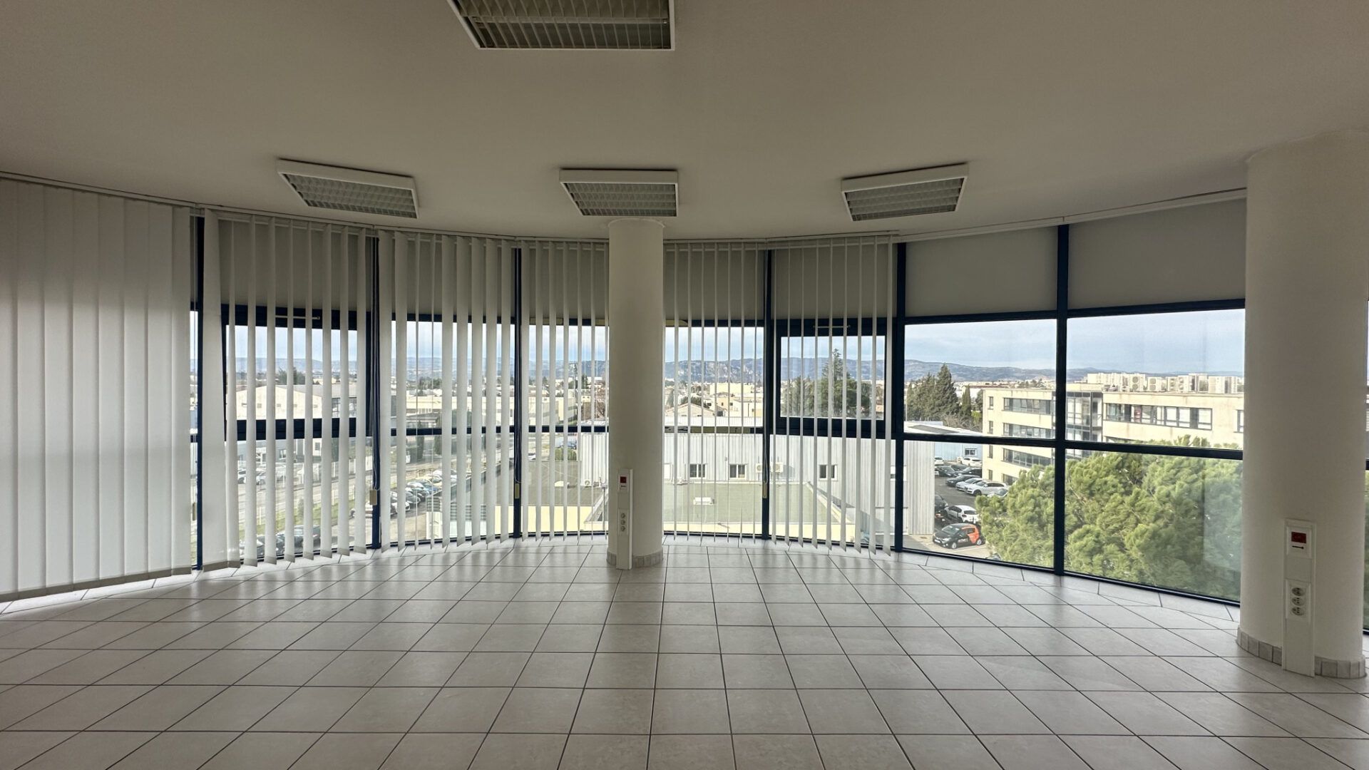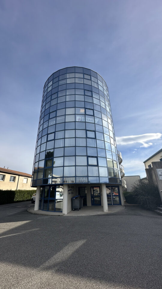 Ce bureau situé dans une tour circulaire entièrement vitrée, offre une vue panoramique à 180o sur Valence.