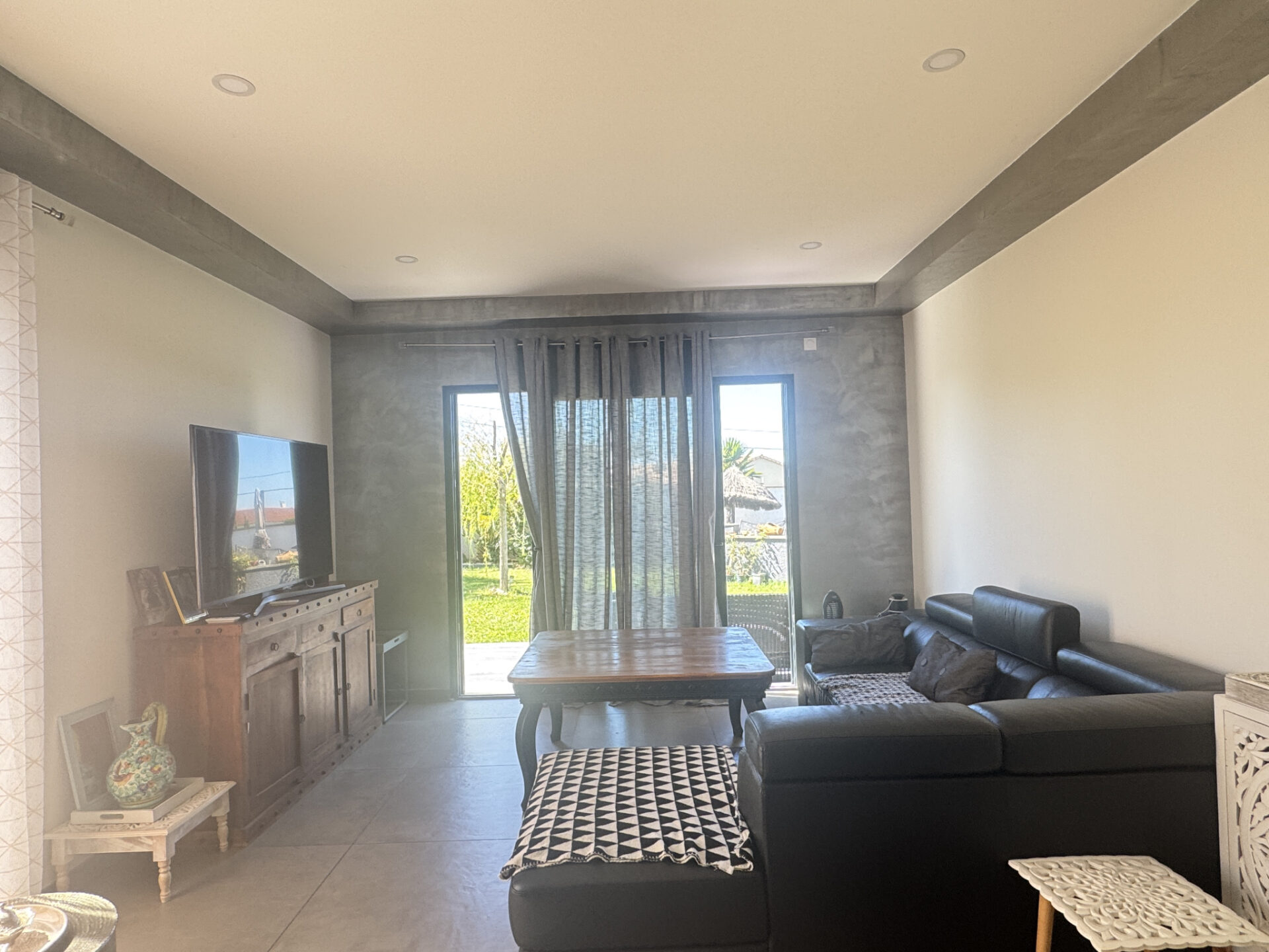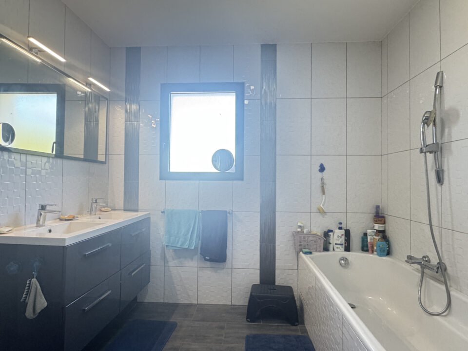 – Depuis le salon, accès direct à une vaste terrasse carrelée (partiellement couverte), idéale pour les repas et la détente.