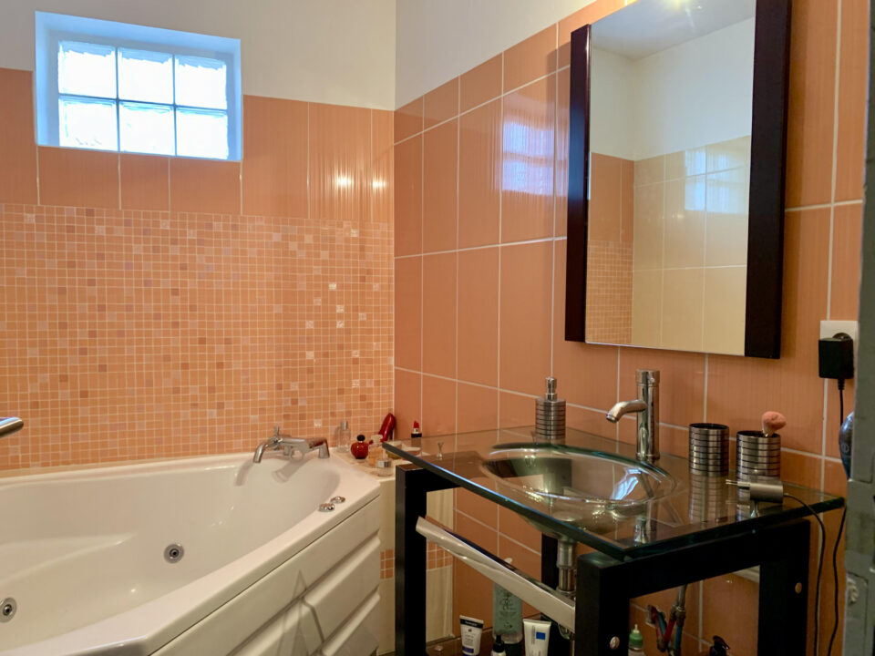 Cette maison en parfait état se compose, à l'étage supérieur, d'une pièce de vie d'environ 50 m2 avec plafond rampant donnant accès à une première terrasse, d'une cuisine équipée séparée et de 3 belles chambres avec placards donnant sur une seconde terrasse sans vis à vis d'environ 40 m2, d'une salle de bain jacuzzi, d'une salle d'eau avec douche à l'italienne et d'un WC séparé.