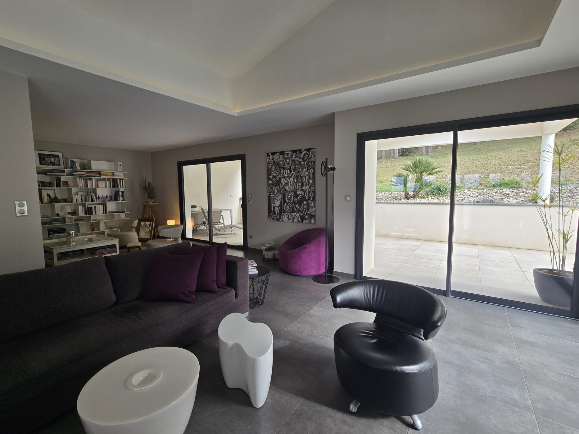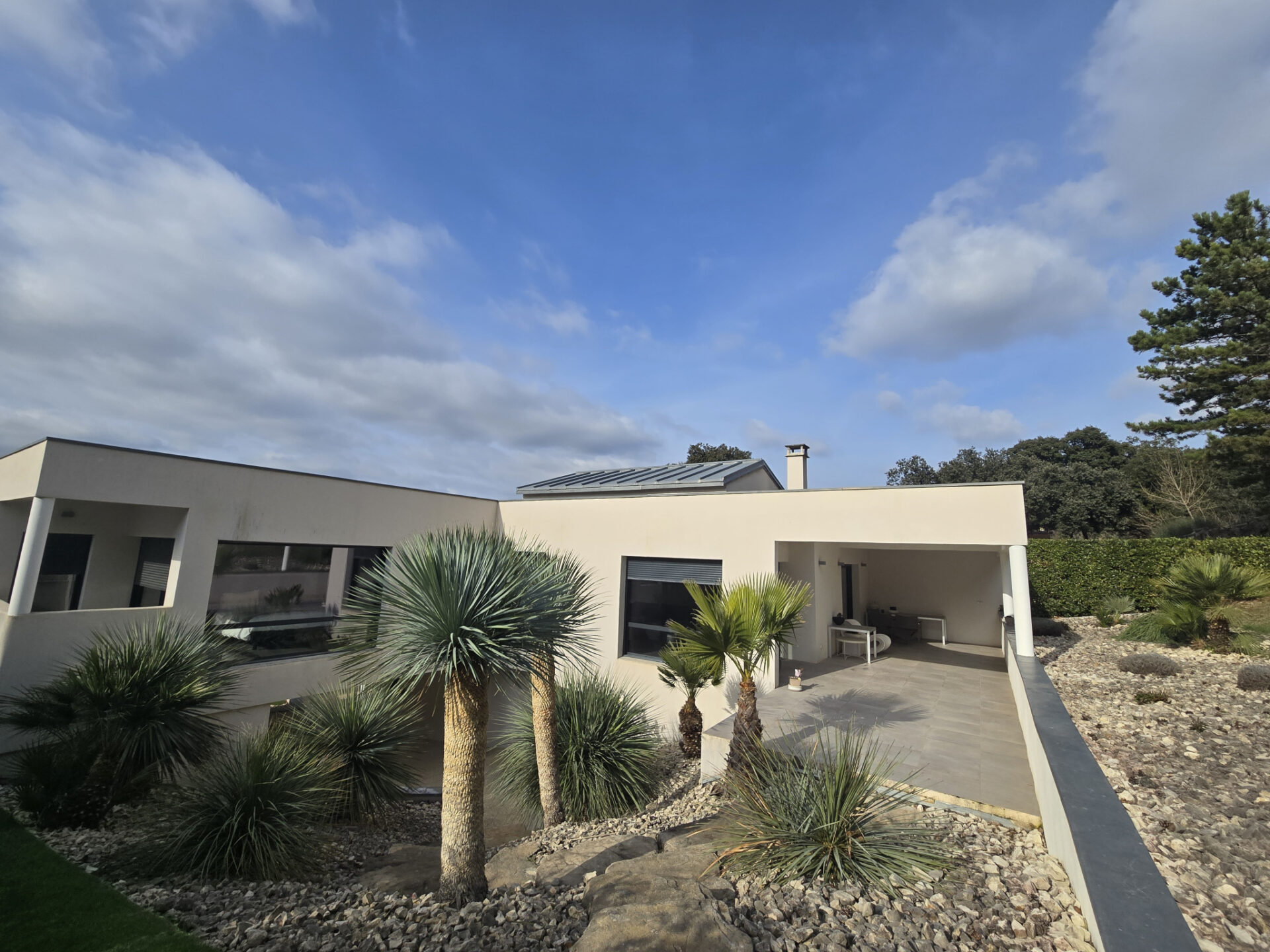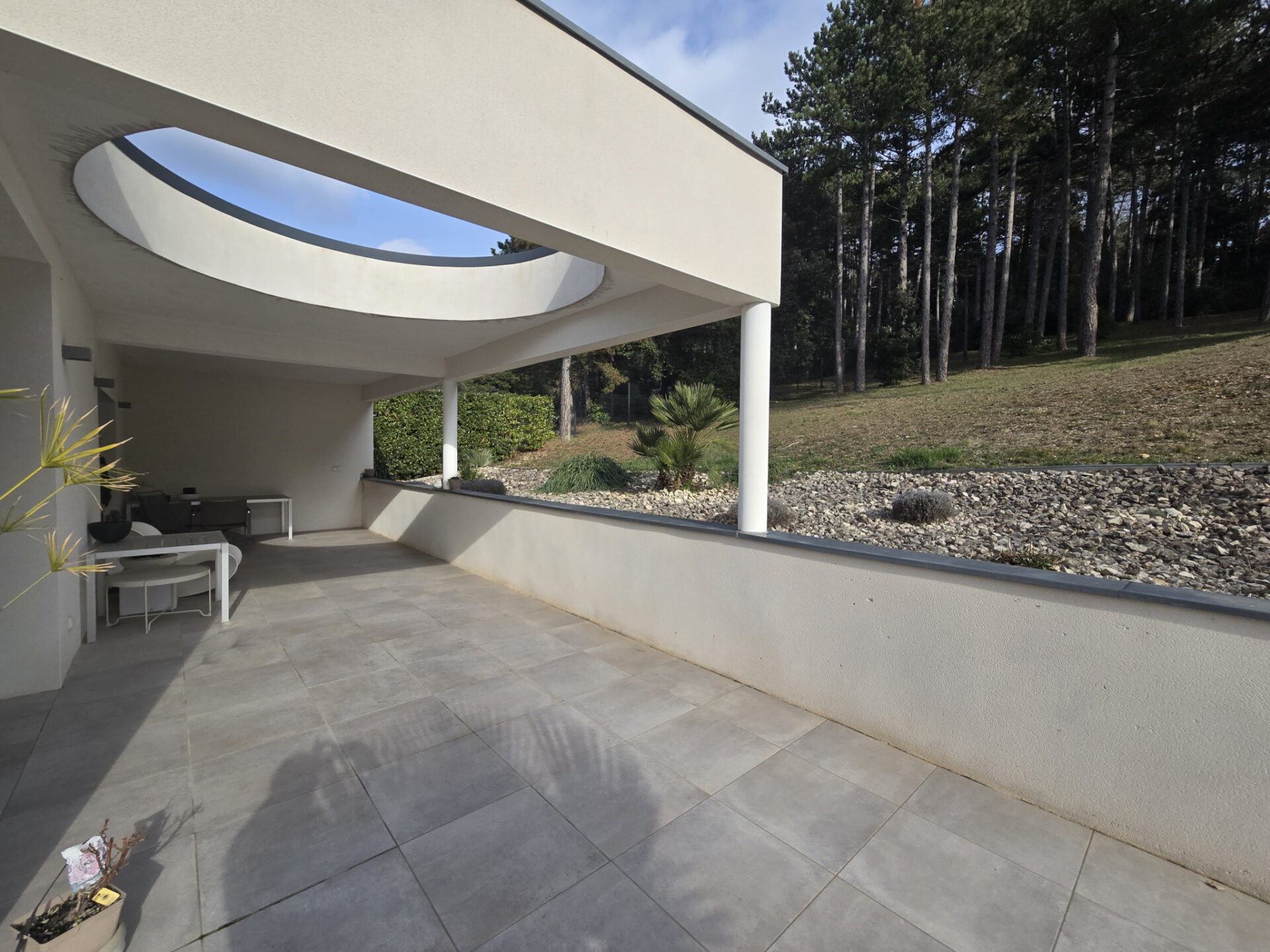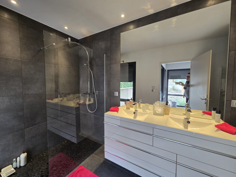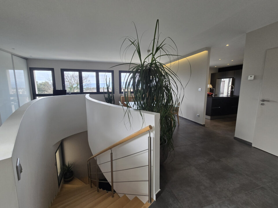 Grand garage pouvant accueillir 2 véhicules, vue superbe et panoramique sur l'Ardèche, cette maison, aux prestations haut de gamme, offre des espaces de vie lumineux et ouverts sur l'extérieur, parfaits pour profiter du cadre naturel environnant.