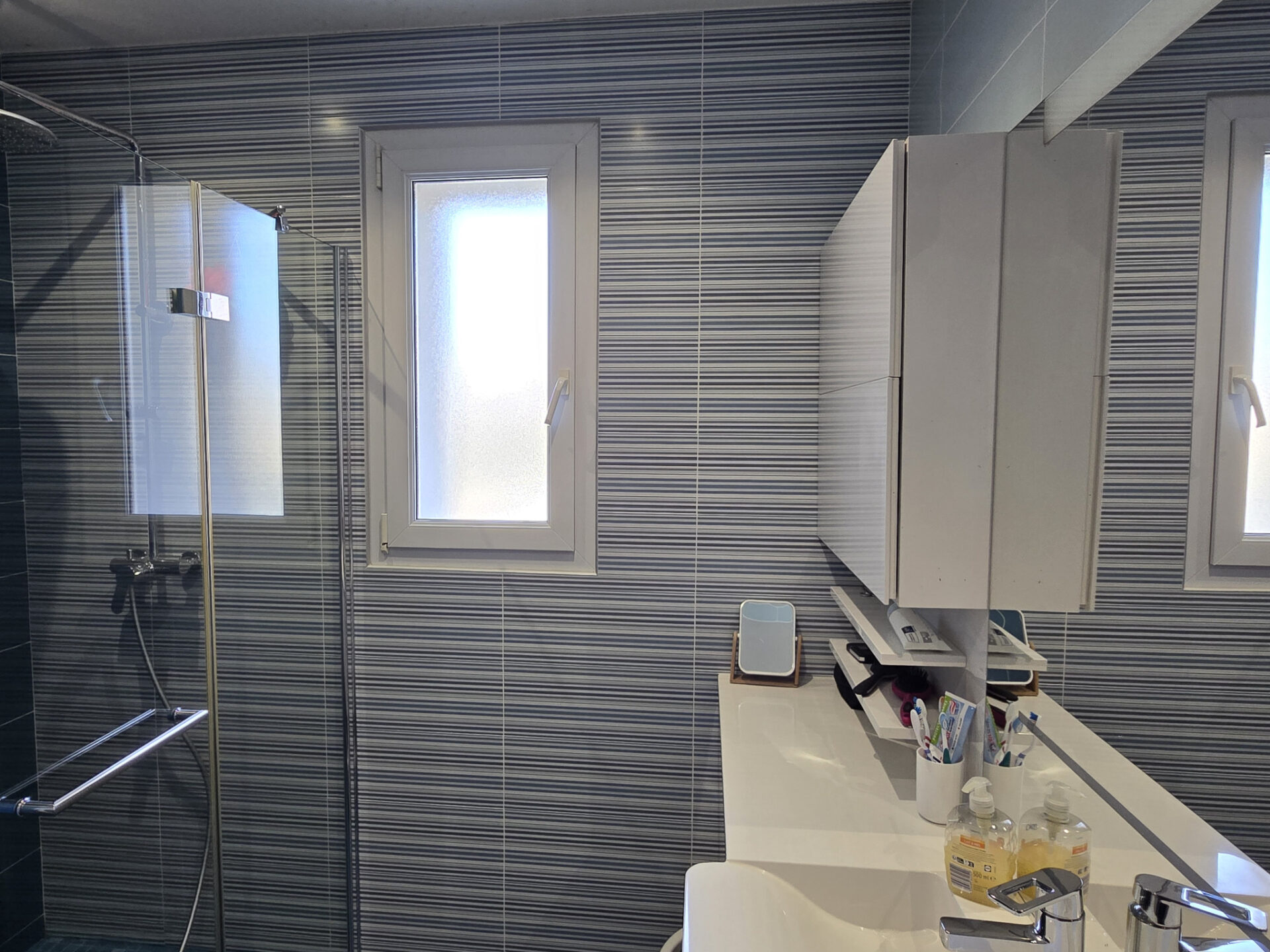 Double vitrage et volets électriques pour un confort thermique et phonique.